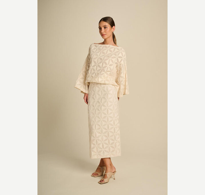 DESCRIPTION: The Minimal Skirt exudes pure simplicity and sophistication thanks to its beautiful raffia fabric. Its natural texture and lightweight structure give the skirt a summery, elegant look. With its clean silhouette, this piece is effortlessly versatile, perfect for styling from casual to chic.