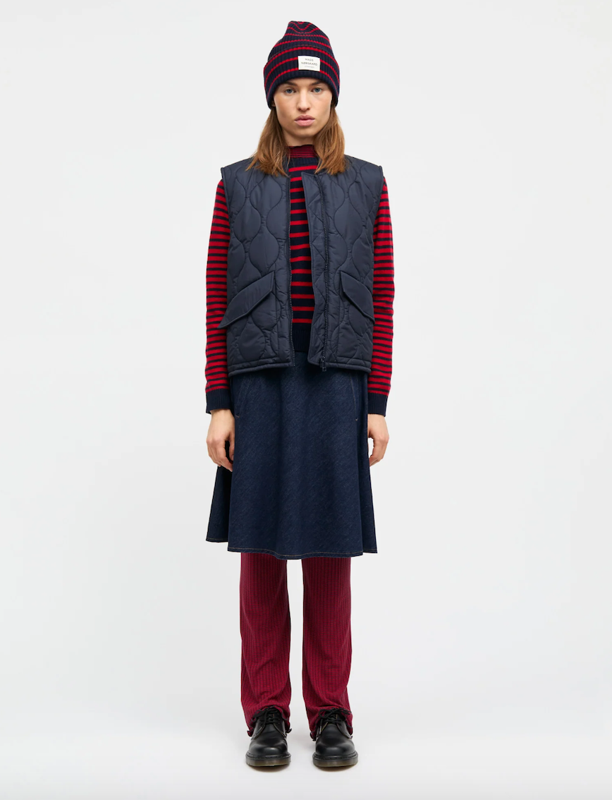 DESCRIPTION: Boxy, water-repellent waistcoat with buttons and large exterior pockets