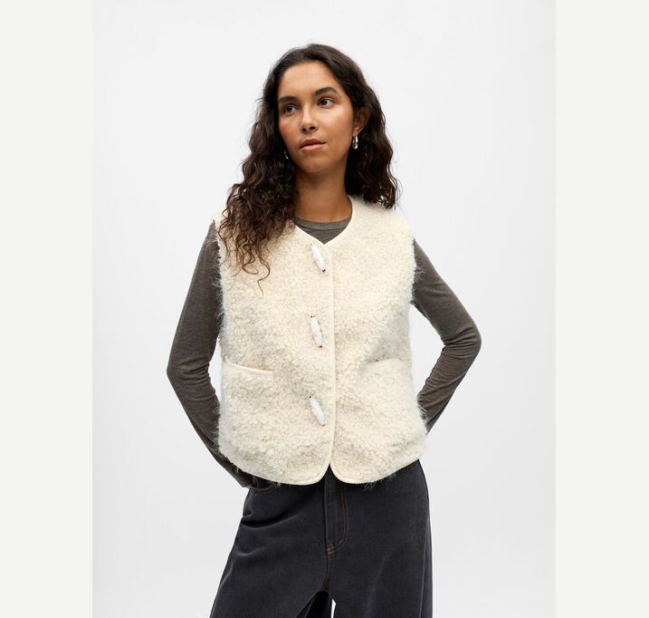 DESCRIPTION: Teddy vest – Round neck – Toggle fastening – Front pockets – Lined – Regular fit
