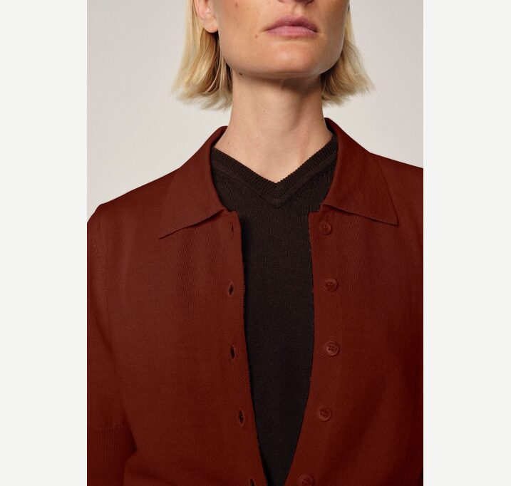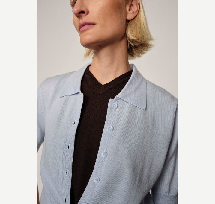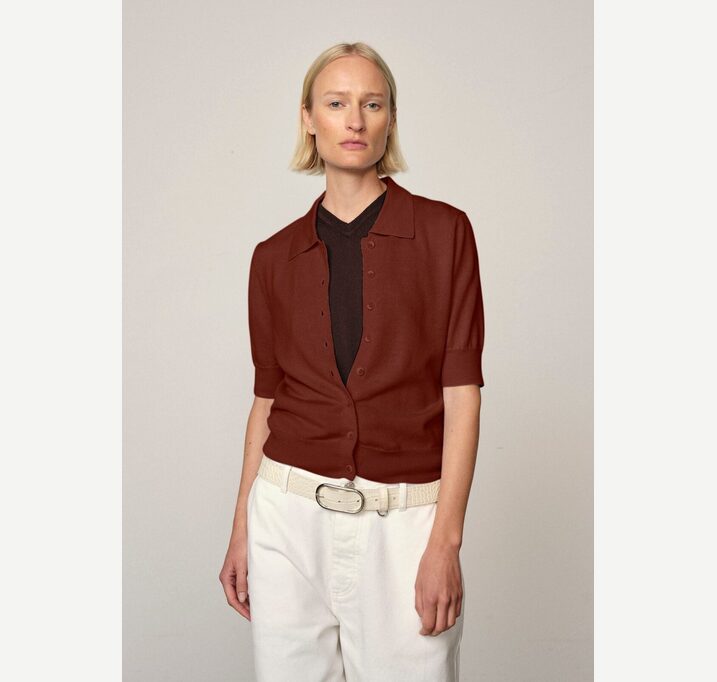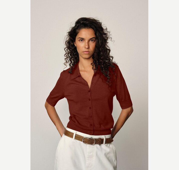 DESCRIPTION: A refined knit with a soft, lightweight hand-feel. Designed with short sleeves, a classic collar, and front button closure. A timeless staple that transitions effortlessly between seasons.