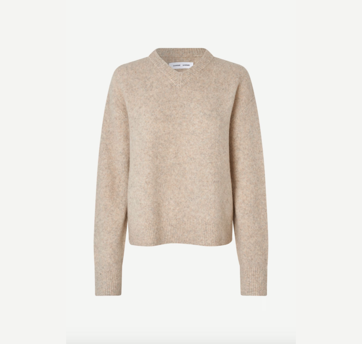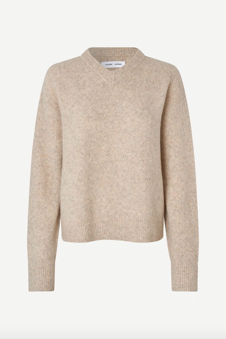 DESCRIPTION: Sweater with a loose fit and dropped shoulders. Rib-knitted collar, cuffs, and hem. V-neck. Main material made from an elastic blend including wool.