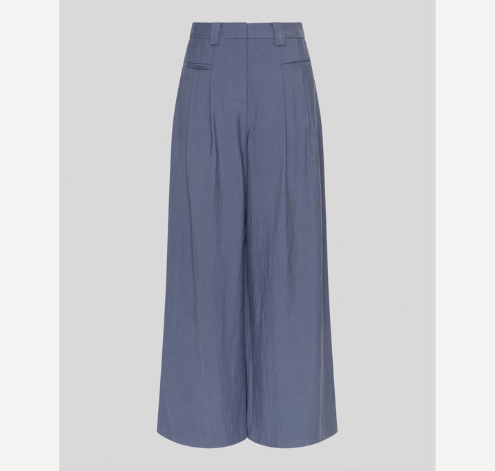DESCRIPTION: These trousers feature an elegant wide-leg silhouette with a high waist for a modern and refined look. The lightweight fabric drapes beautifully and ensures comfortable wear throughout the day. Designed with belt loops and discreet pockets, they are easy to style for both everyday wear and more formal occasions.