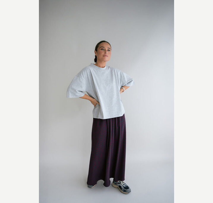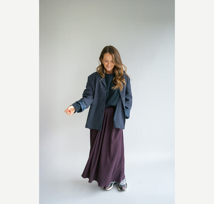 DESCRIPTION: Our bestseller, the Juliette skirt: a long skirt with a beautiful panel at the front and an elasticated waistband at the back. The skirt also has pockets for a more casual look. It pairs beautifully with our Maya or Milly blouses for a dressy look, but also looks great with our sweaters for a more edgy look.