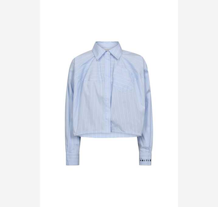 DESCRIPTION: Haute L’Amitié shirt in light blue with white stripes. The shirt has long sleeves and a classic shirt collar. Long sleeves with cuffs. Suitable for both formal and casual occasions Classic shirt collar with button closure